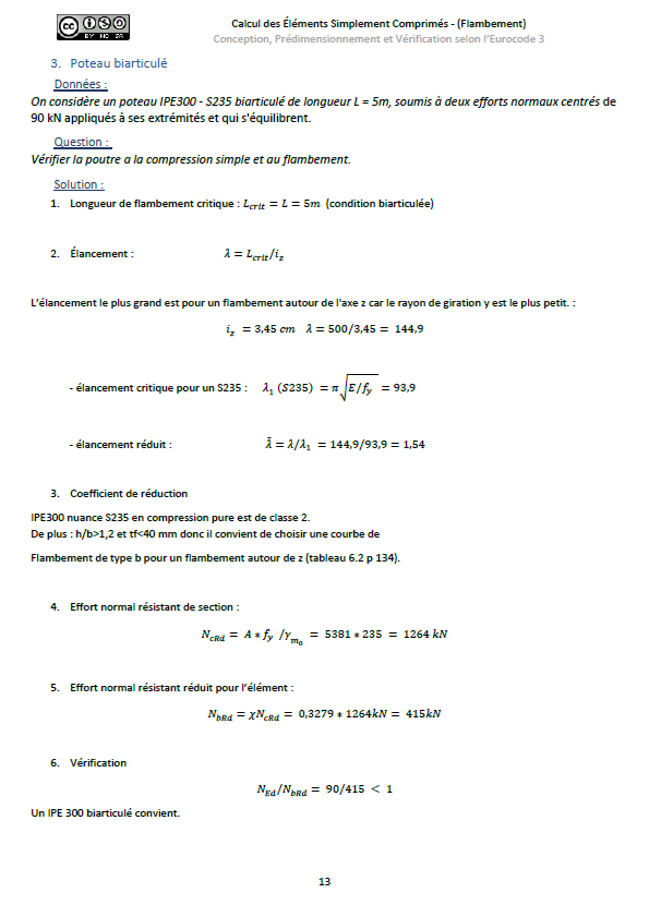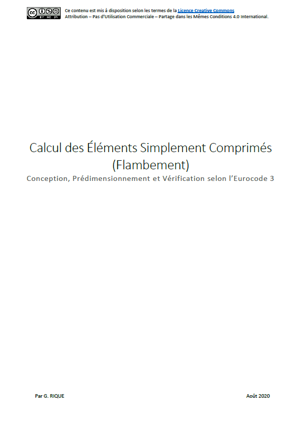 Calcul des Éléments Simplement Comprimés(Flambement) Publié parGuillaume RIQUE26 octobre 202029 septembre 2021Publié dansExemple, Flambement, InstabilitéÉtiquettes :Calcul de Structures, Conception, Construction métallique, EC3, Eléments Comprimés, Eurocode 3, Exemple de calcul, Flambement, Instabilité, Structure métallique Conception, Prédimensionnement et Vérification selon l’Eurocode 3 Télécharger en PDF Contenu protégé par licence Creative Commons 4.0 Partager : Cliquer pour partager sur X(ouvre dans une nouvelle fenêtre) X Cliquez pour partager sur Facebook(ouvre dans une nouvelle fenêtre) Facebook J’aime chargement… Similaire